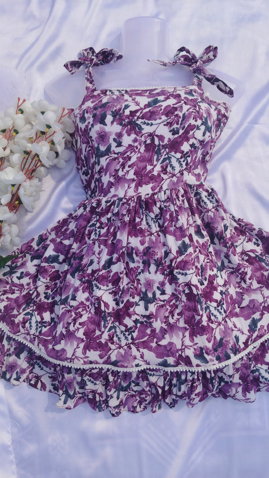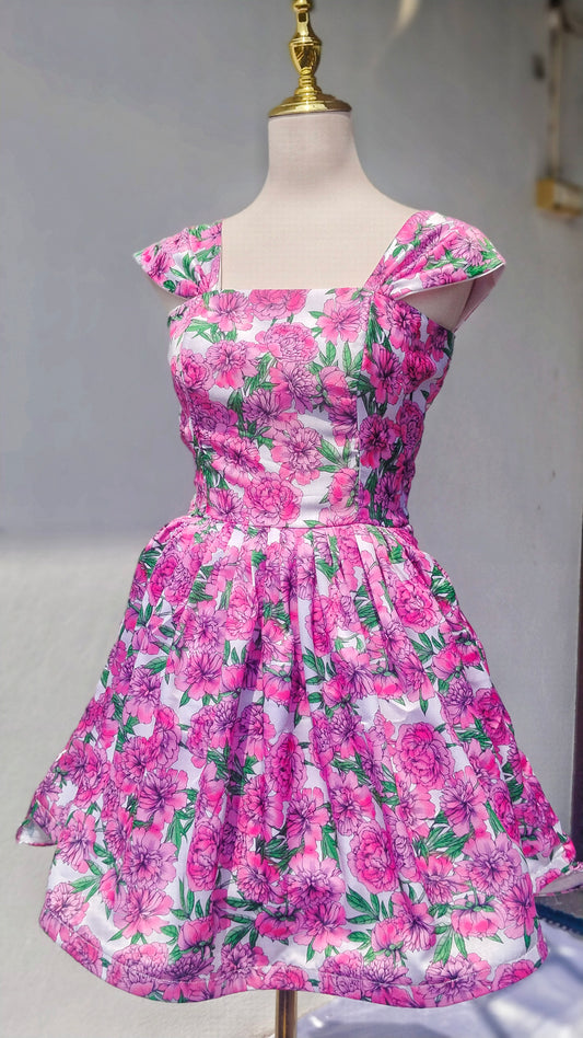 BABY PINK FLORAL PRINTED SHORT ORGANZA DRESS